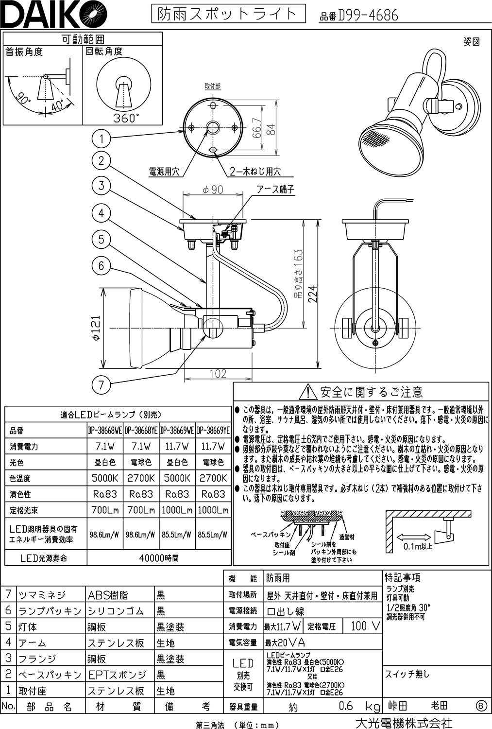 アウトドアライト/スポットライト DOL-3766XB/DOL-3766XS/D99-4685/D99-4686 -